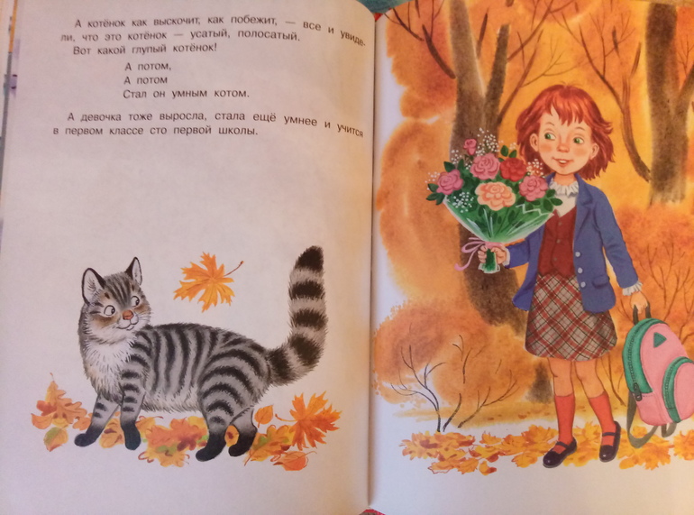 И взрослого котенка даже нарисовали и девочку первоклассницу)