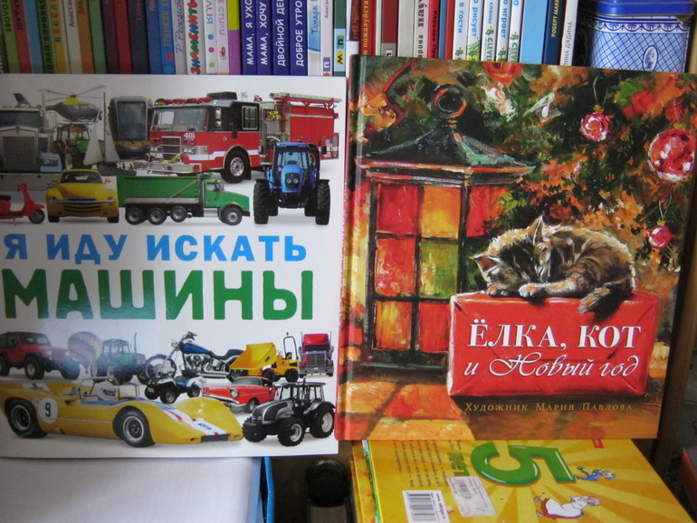 Детям очень понравился зайчик моего советского детства, и они сразу признали котенка, ведь весь январь новогодними книжками я украшала интерьер, периодически их меняя и переставляя через день-другой. А им и картинки новогодние интересно было смотреть, и названия книг читали. Сами. Без понуканий. За день получалось, что начитывают этими заголовками примерно страницу букваря.