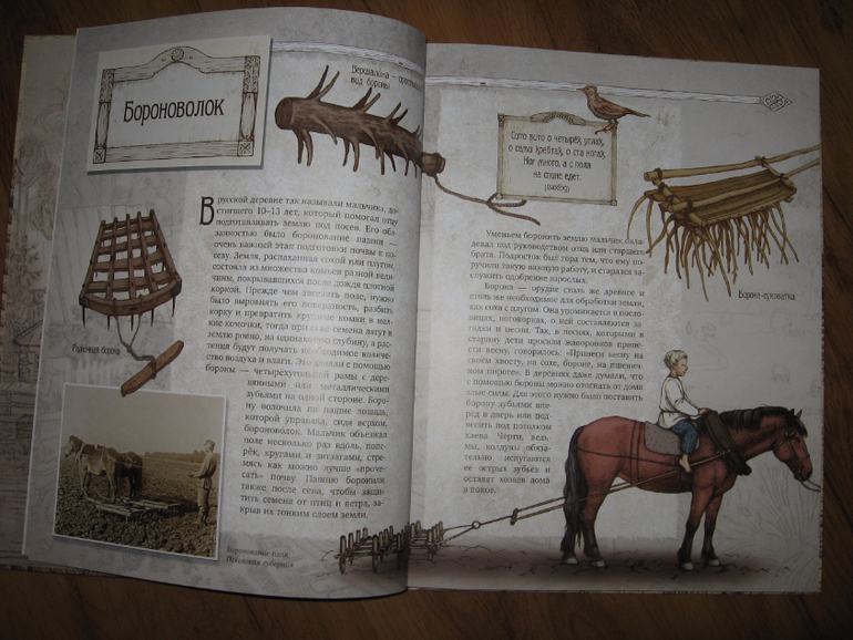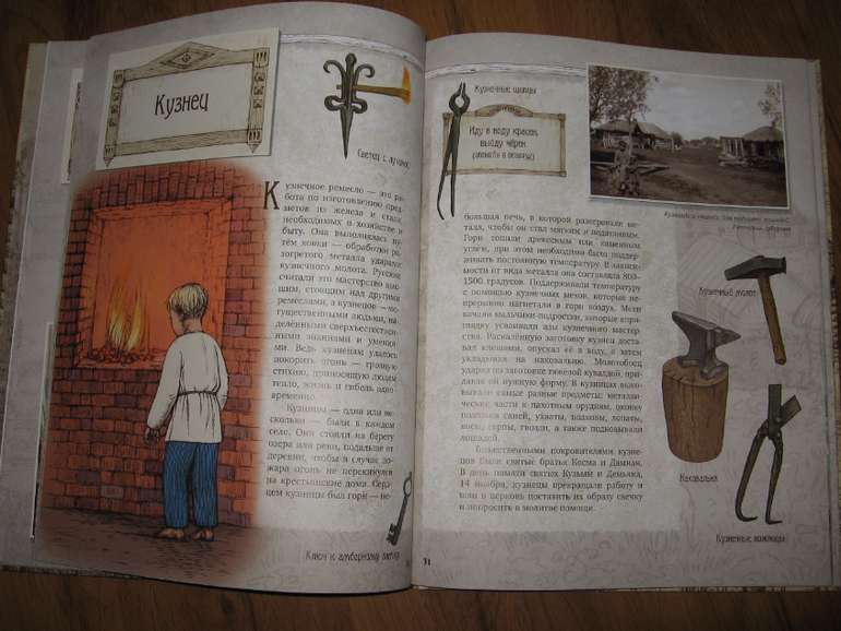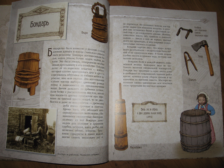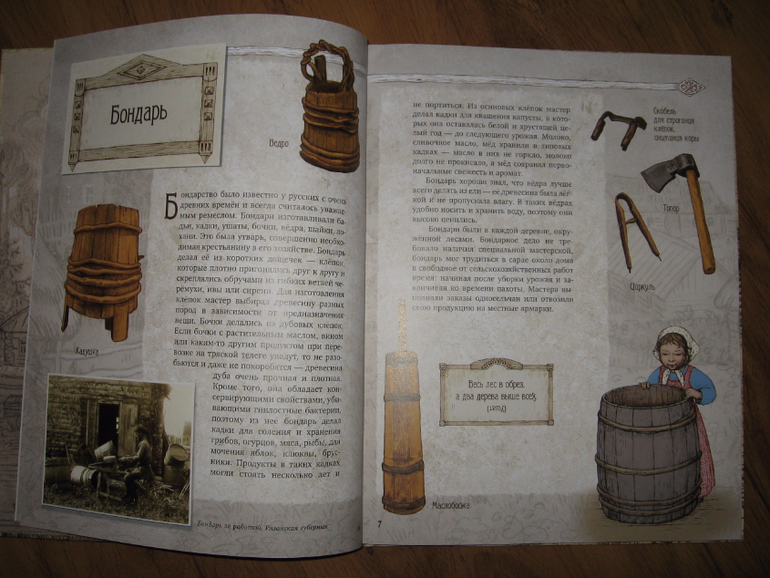 Даже не знаю с чего и начать отзыв об этой книге. Долго вокруг нее хожу и все никак не могу подступиться к написанию, хотя дочитали ее уже где-то с неделю как, может даже и больше. Читали дозировано, по одной-две профессии за один раз, т.к. больше уже не воспринималось. Книга оказалась полезна не только для ребенка, но и для нас с мужем, поскольку оказалось что мы едва ли знали и треть из написанного, а ведь всего-то лет сто назад все это было живо.