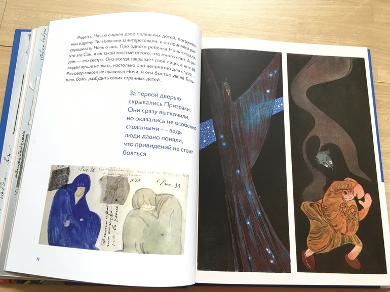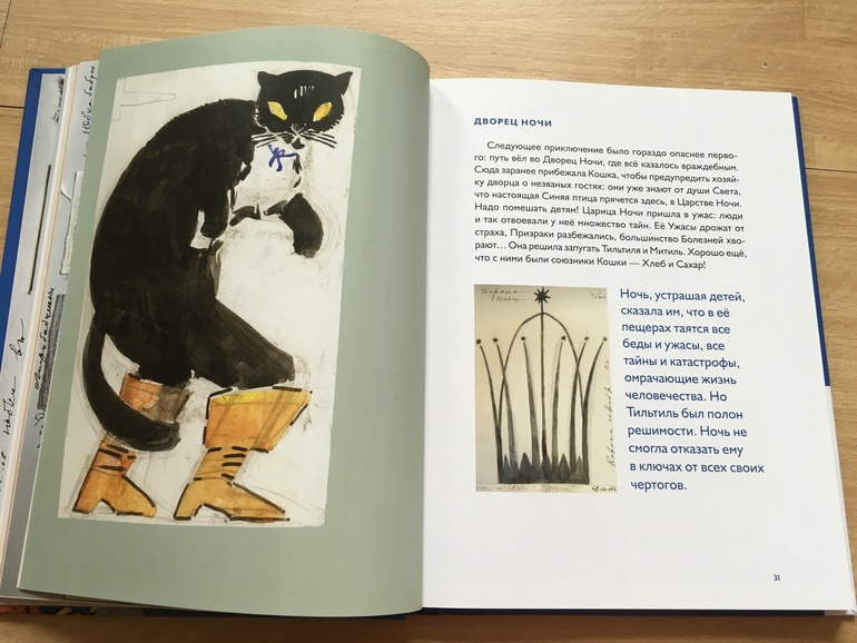 Очень рекомендую.. пожалела, что всю книгу отснять не могу...)) помимо пьесы в ней потрясающие иллюстрации и фотографии декораций, актеров, биографии драматургов, вообщем, фактически знакомство с историей Художественного театра и создания пьесы...есть даже альбом забракованных рисунков Синей птицы)