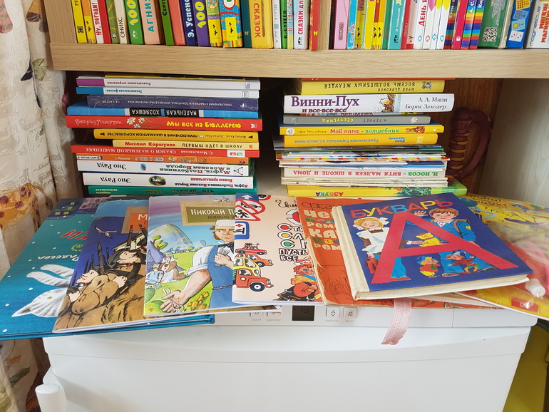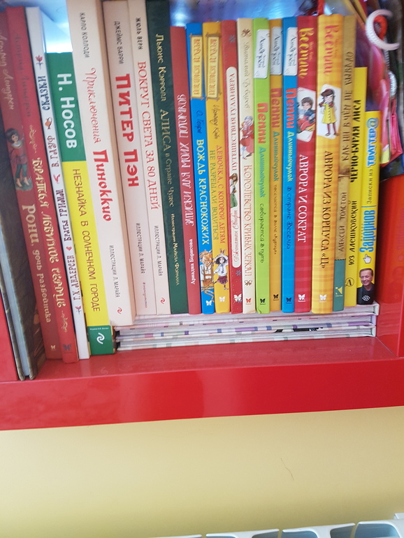 То что на полках - это было, а то что стопочками лежит- куплено в библионочь. В кадр не попал Незнайка на луне и Карлсон 3 часть))Здесь правда еще букинистика попала))