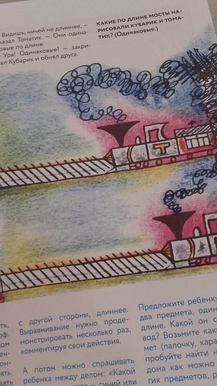1. Приключения Кубарика и Томатика. Ненавязчивое, приключенческое обучение счету, понятиям шире-уже, больше-меньше, поровну и т.д. Приобрела радостно эту книгу сразу после переиздания и думала, что ребенок все бросит и сядет слушать, ага)))) закрыл и сказал не хочу, пробовала неоднократно и в итоге убрала в расстройстве, но вот вспомнил про нее, сказал хочу про лошадку, все таки возраст книги 4+ (лично мое мнение). Очень ждет продолжение. В конце каждой главы очень хорошие подсказки для родителей) Продолжение куплено, но еще не отдано))