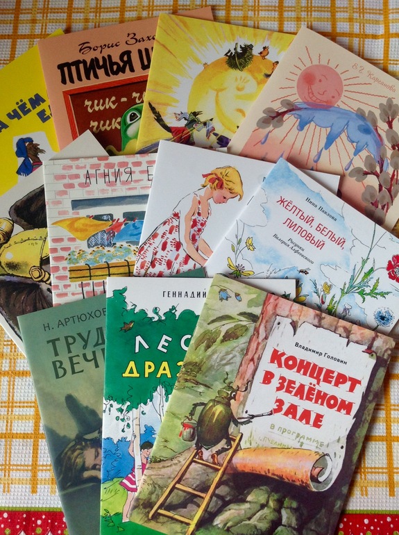 Трудный вечер отказался наотрез читать!!! Лесную дразнилку не любит:( а мне нравится! Новенькие в этот раз Хорошая вода и Концерт в зеленом зале очень хорошо пошли! Желтый, белый, лиловый выборочно)) Остальные с удовольствием перечитываем!