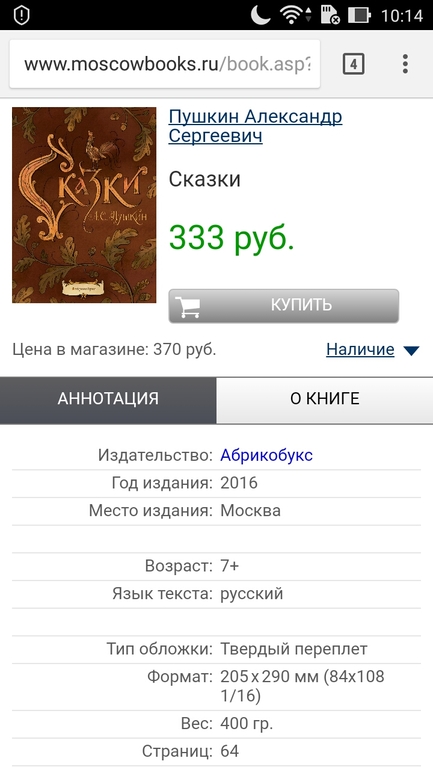 Вот эта книга очень меня порадовала - "Сказки. А.С.Пушкин" издательства Абрикобукс.