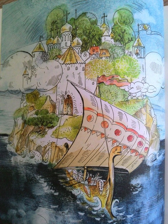 Иллюстрация поближе. Необычайно красивое видение сказок Пушкина, правда?