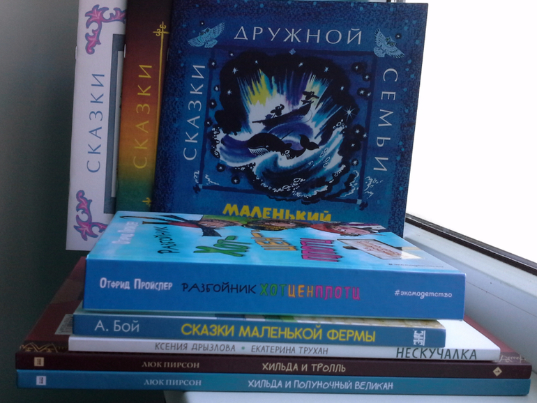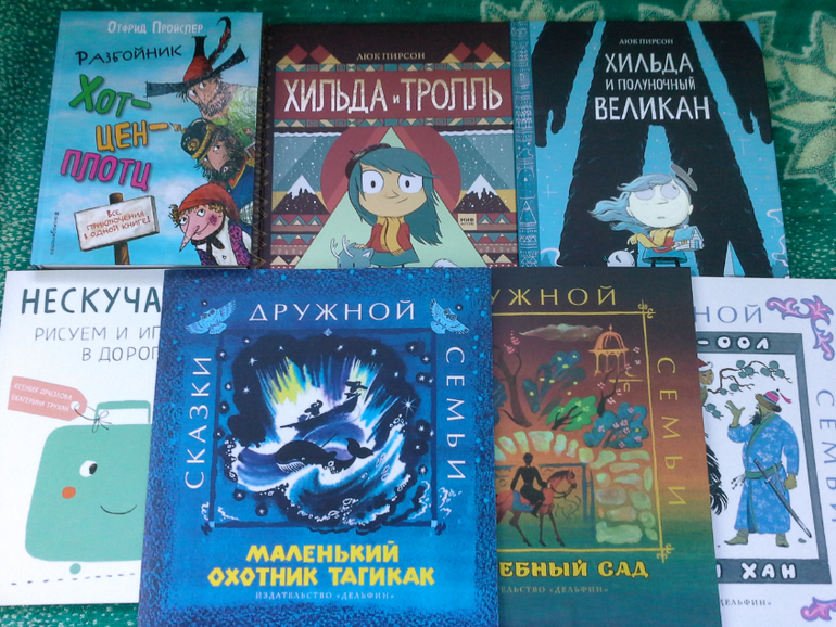 А это сборная солянка из разного. Нескучалку в отпуск возьмем для мелкой. Хильду на вырост. Из этого всего прочли только Разбойника Хотценплотца и Сказки маленькой фермы. (Последнюю не покупала, а выиграла в розыгрыше в ВК.) Обе понравились сыну, дочке только про ферму.