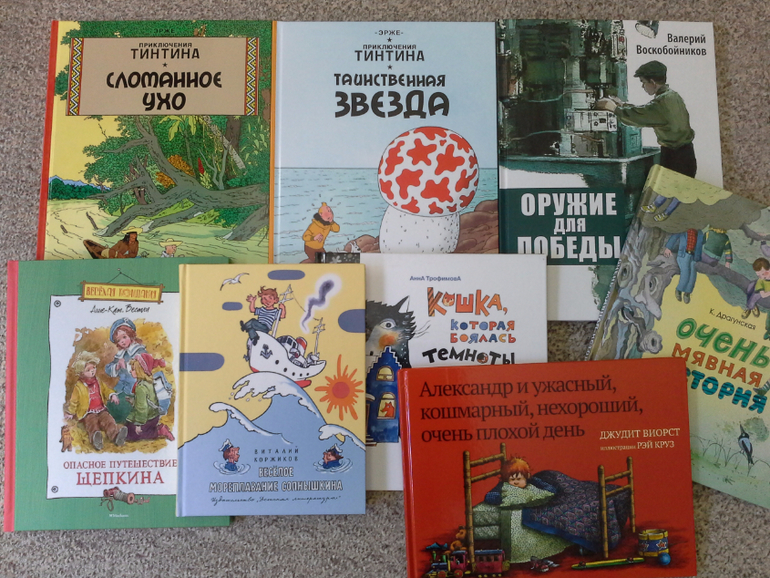 Это заказ в библионочь. Тинтин, Солнышкин и оружие для победы навырост, остальное можно сейчас читать.
