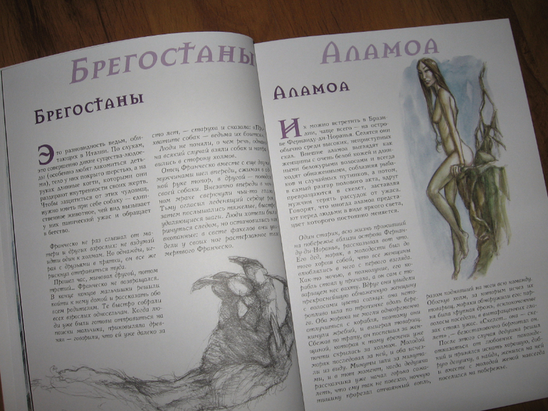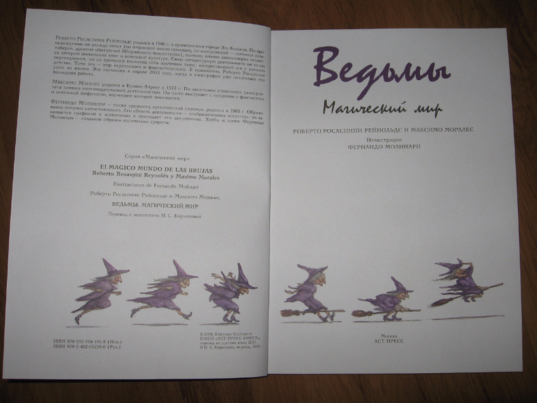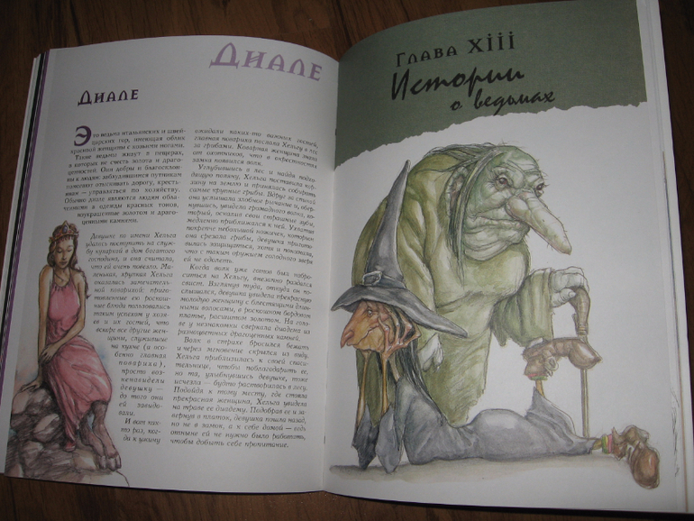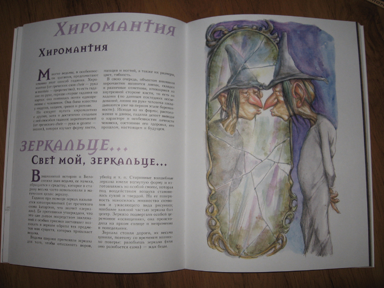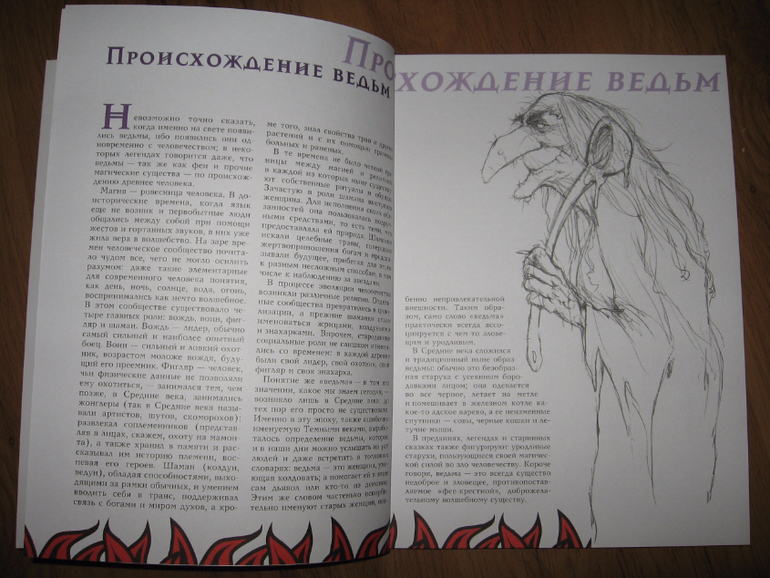 Я пару дней после покупки просто рассматривала картинки, не читая, а посмотреть есть на что) От детей книги пришлось спрятать. Егор, стащив книгу про ведьм и полистав немного, боялся потом без света засыпать.