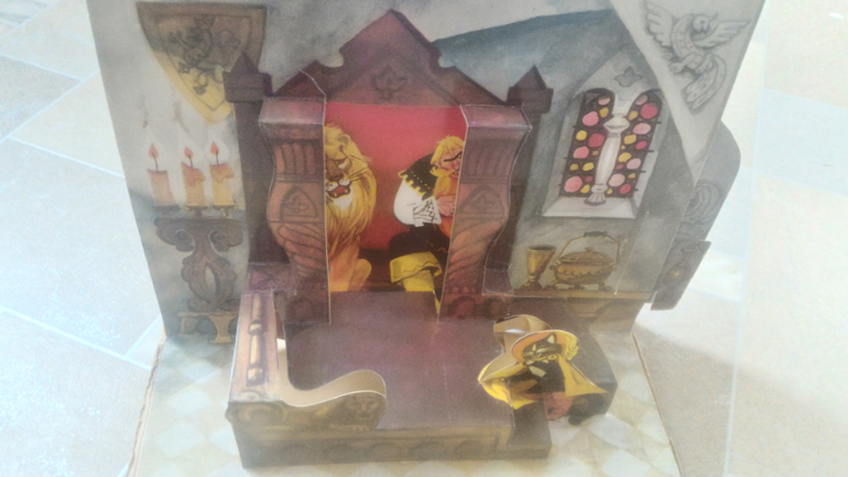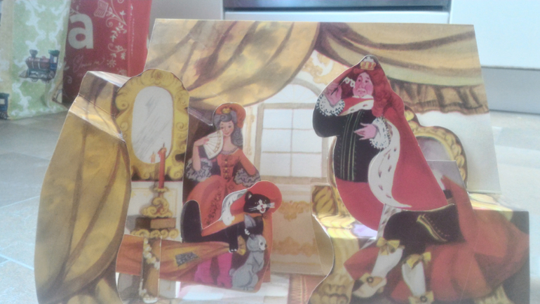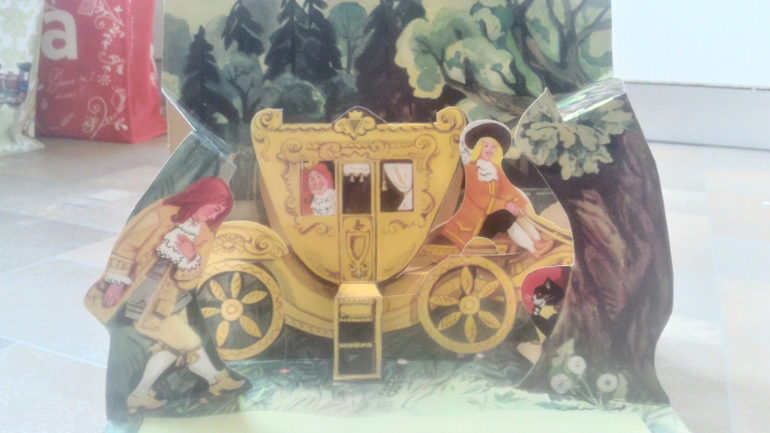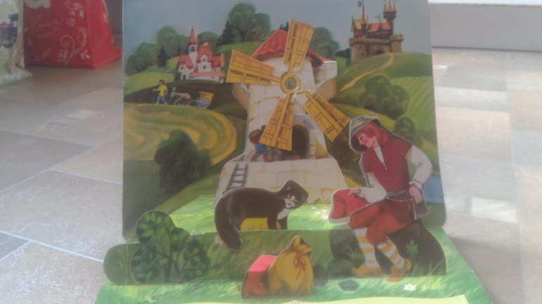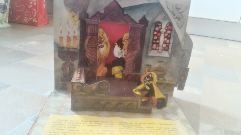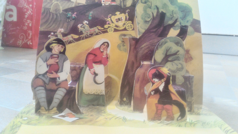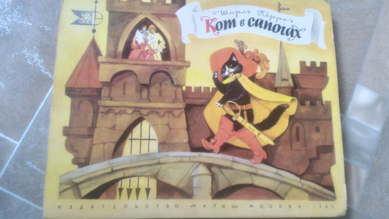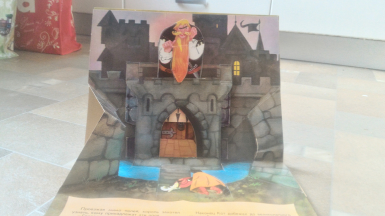 Самая моя обожаемая детская книжка - вот это "Кот в сапогах". Такая здесь красивая принцесса, настоящая француженка. В детстве всё пыталась её нарисовать, придумывала ей новые платья. А еще здесь на каждом развороте какие-то движушиеся элементы: то кот идёт, то дверь замка поднимается, а людоед становится львом.