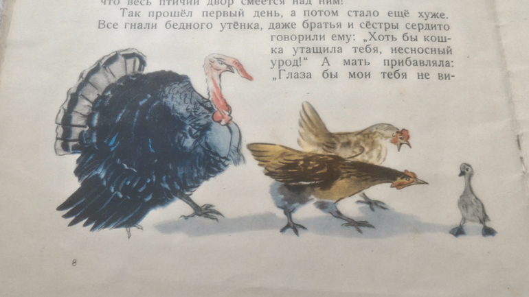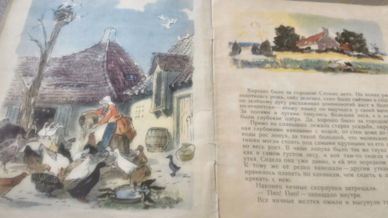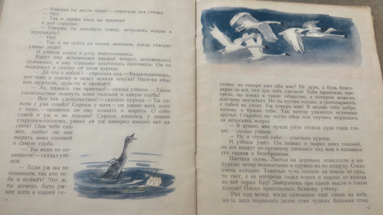 "Гадкий утенок" у меня был с рисунками Костровой. На фото книги нет, так как обложка не уцелела. Даже интересно, как она выглядела. Иллюстрации очень нежные, но их мало для такой сказки, на мой взгляд.
