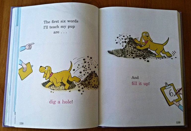 В фиолетовом сборнике шесть рассказов написанных или\и проиллюстрированных Истмэном или его сыном. Для меня решающими в выборе сборника и самыми любимыми были и остаются "Big dog .... little dog" by P. D. Eastman и "I'll Teach My Dog 100 Words" by Michael Frith. По ним просто и очень весело учить простые фразы, основные цвета, глаголы, противоположности и еще много разных полезных слов.