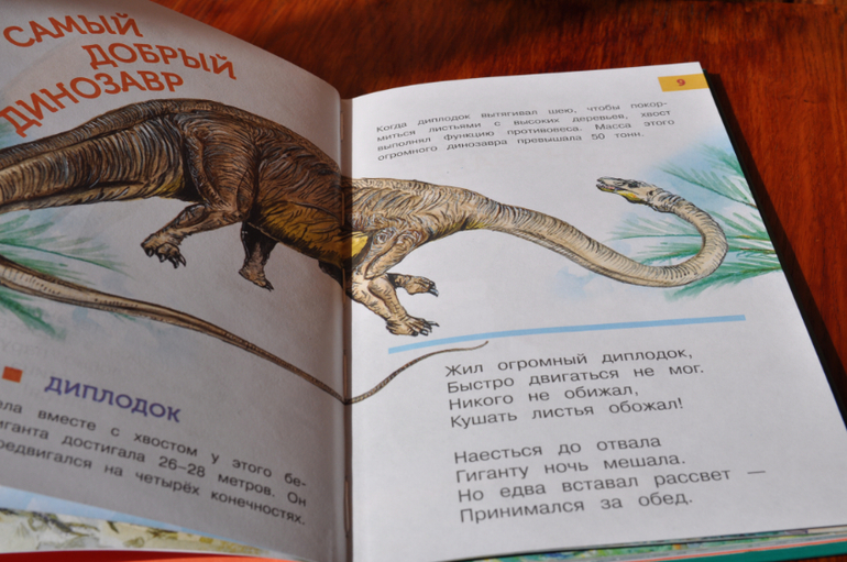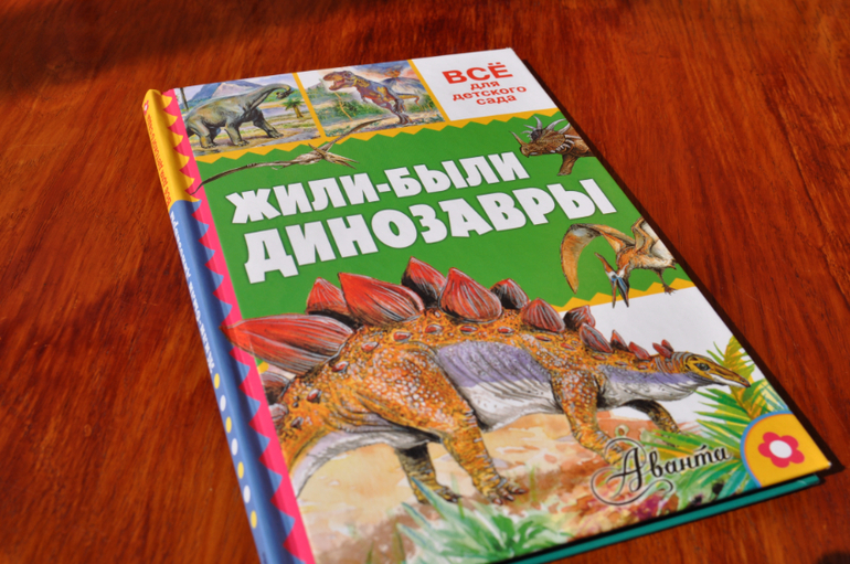А это такая мини энциклопедия о динозаврах. Конечно, иллюстрации местами размытые, разномастные, но моему любителю динозавров понравилось. К каждому виду есть соответствующий стих. Читали и соотносили с картинками наши фигурки. Нашлись практически все экземпляры) И да, книжечка маленькая, вроде удобная, но некоторые развороты до конца не открываются.