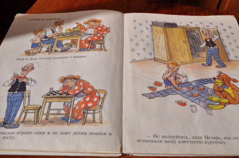 Познакомились с проказником Пифом. И тоже сразу его полюбили, как и малыша Дуду. Андрюша просил читать только те истории, где есть Дуду) Книжка старенькая, в конце явно отсутствуют страницы, но читали с удовольствием.