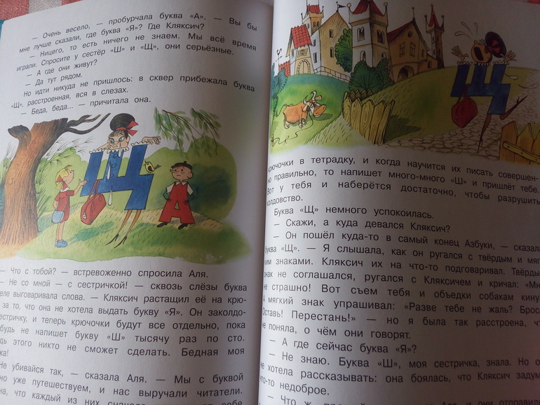1. И.Токмакова "Аля, Кляксич и буква А", издательство "Лабиринт". Эту замечательную сказку приобрела по просьбе коллеги. И вот на что хочу обратить внимание. В тираже за 2014 год были перепутаны 2 иллюстрации про букву Щ (их порядок).