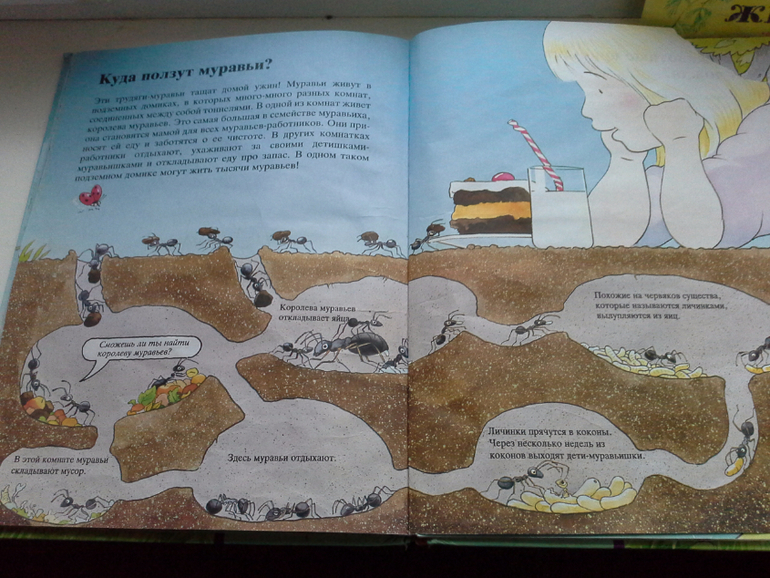 Эту небольшую энциклопедию для детей выбрал для сына папа. По мне так книга ни о чём. Пара размытых предложений по каждой теме, но Светославу понравилась. Он вообще любит про муравьев.))