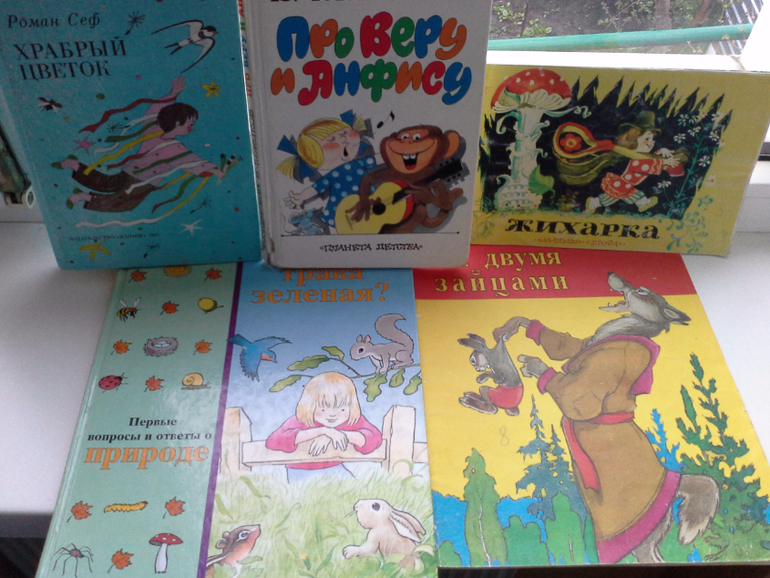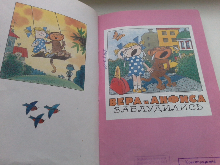Записались в марте в библиотеку. Брать там особо нечего. Муж сказал: "У тебя дома книг больше.))" Но поискали, нашли чое-что интересное. Про Веру и Анфису сыну очень понравилась. Брали потом ещё раз. Это книга-"комикс" для малышей. В ней не полный текст и много картинок.