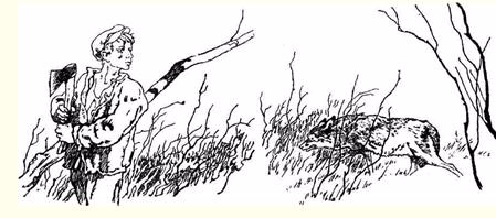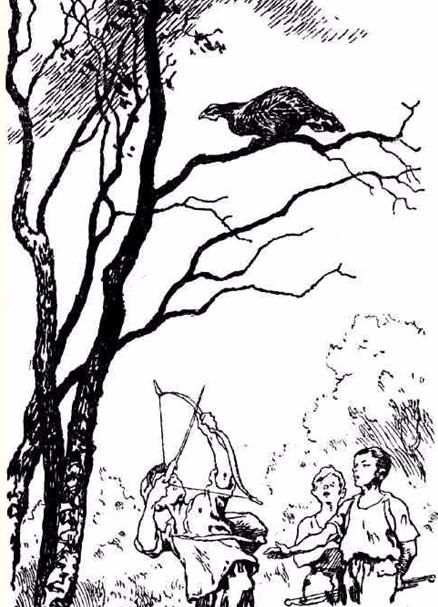 "Сейчас Леньке совсем не было страшно в этом диком глухом лесу. Может, потому, что лес с его таинственной жизнью, зеленой пахучей прохладой, голубизной озер и темными омутами речек он полюбил еще в ту пору, когда в родном селе Калинкине никто из ребятишек и не думал о войне и радио не передавало сводок Информбюро. И фронтов не было. Но был отец. Были костры в синих ночах. Были туманные, росные утра на заветных лесных озерах. Были пахнущие хвоей шалаши на тетеревиных токовищах. И все - с отцом. И все это оборвала война.