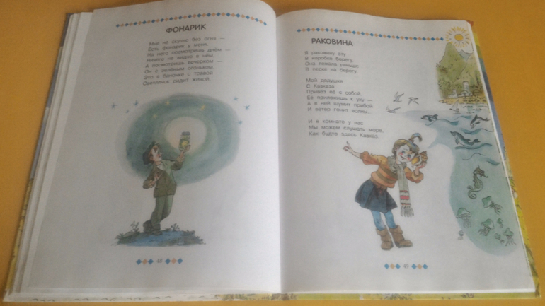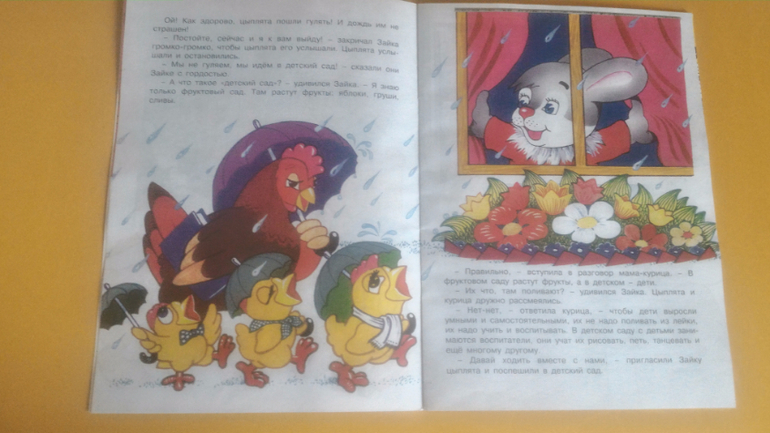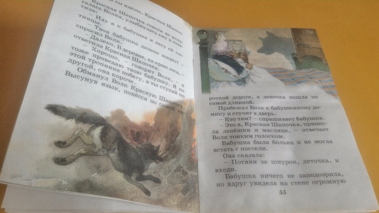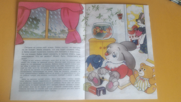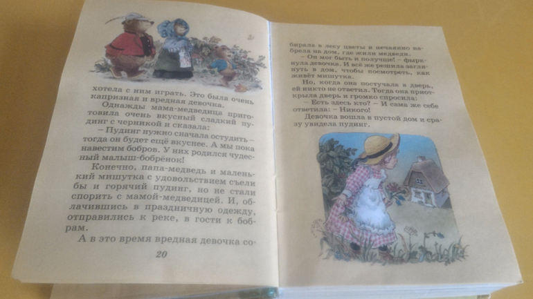 Но, несмотря на всё это, нам книжка нравится. Её удобно с собой брать, все самые основные сказки в ней есть, картинки приятные, изложение гладкое, язык не спотыкается. Читали здесь "Красную шапочку", "Три медведя" и "Волка и козлят". Еще муж по картинкам рассказывал Мире "Дюймовочку", "Белоснежку" и прочие девчачьи сказки.