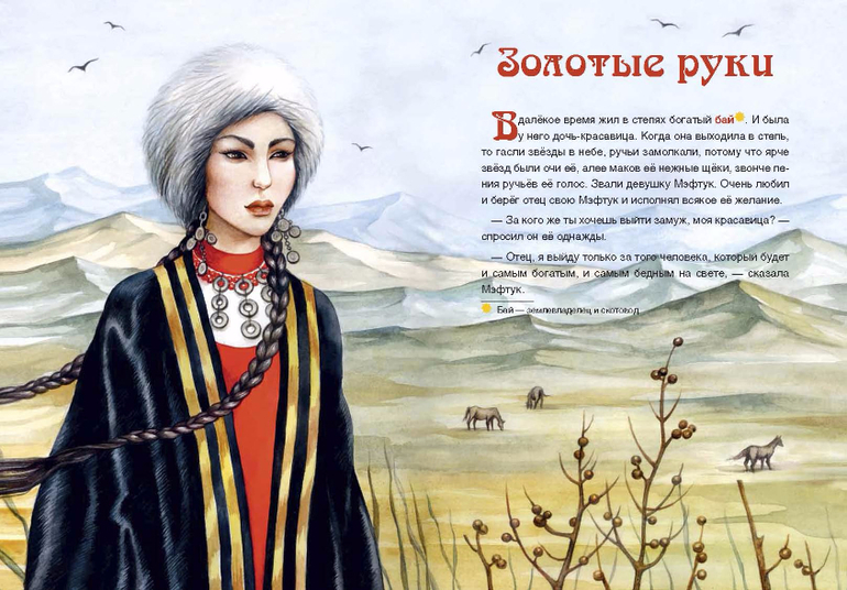Иллюстрации Виктории Ватолиной очень точно передают быт башкир, прорисована каждая мелочь в одежде, в украшениях. Красивые, выразительные лица у людей. Я влюблена в книгу с первого взгляда.