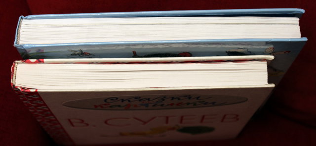 Какое тщательное сравнение!! Мне серийные нравятся!! У нас только "Сказки в стихах", полностью довольна! И обложка не пачкается хотя белая.. Другие уже есть в другом исполнении а то бы тоже всю серию собрала.