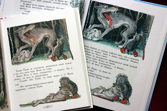 У меня две книги из серии - Чуковский и Сказки в стихах. Вторую держу только ради Лесного плакунчика. Не нравится мне качество серии. Совершенно без души сдаланы книги. Сравниваю со своей старенькой "Сказки и картинки" Сутеева. Лена её очень любила. Катя к Сутееву совсем равнодушна - оно и к лучшему, нет сейчас достойных изданий. А ради "Мешка яблок" я даже немецкий сборник купила.