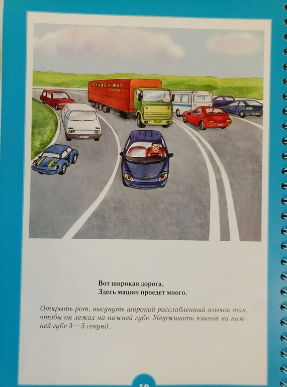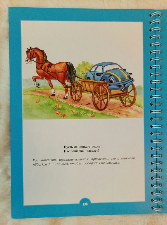 Книжка издательства Детство- пресс, очень удобного формата, она меньше А4, и главное, она на пружинке. Очень удобно смотреть и переворачивать, только приглядывать надо, чтоб от усердия сын лист не вырвал. Для моего мальчика это оказалось беспроигрышным вариантом, так, между делом, в игре он делает полезные упражнения. Вот как действуют машинки)