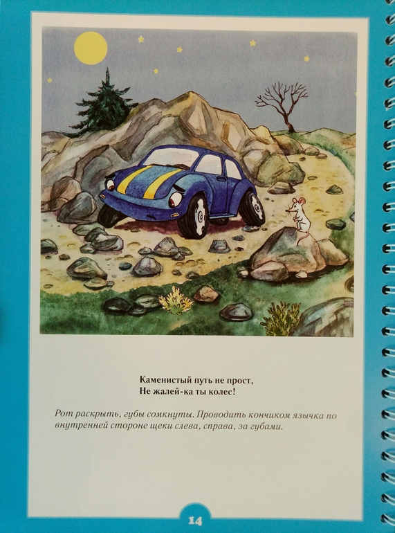 В книжке содержится рассказ про один день из жизни машинки, на каждом развороте коротенький стишок и описание упражнения, единственное, жалко, что нет рисунка, для наглядности, как это упражнение выполнять.