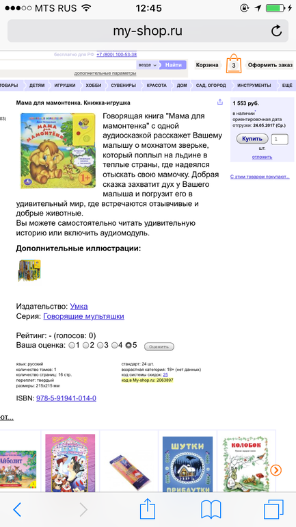 Огромное спасибо!! Действительно, книги хорошо эти идут и я бы всю серию купила , а их очень много должно быть : 15 как минимум. А это, сами понимаете , очень дорого, но игрушки им не нужны : только книги интересуют, так что вы очень помогли!! Буду звонить!!! Потому что тысячу за книжечку - совсем непосильно( спасибо!!!