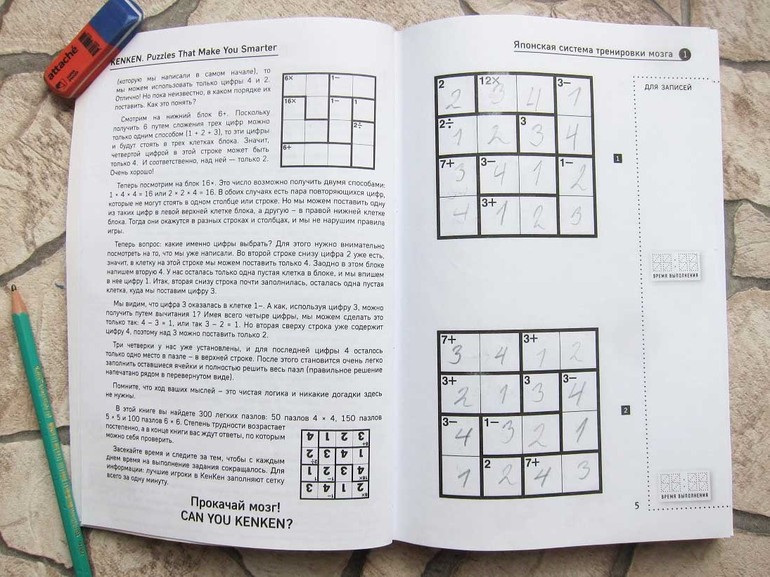 Задания предлагают решать на время. Указано, что лучшие игроки в KenKen заполняют сетку всего за одну минут. Жаль только не указано сетку какого размера)))
