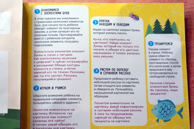 Автор этого пособия Светлана Воскресенская, подготовила 5 видов заданий, которые очень подробно описаны на обложке блокнота.