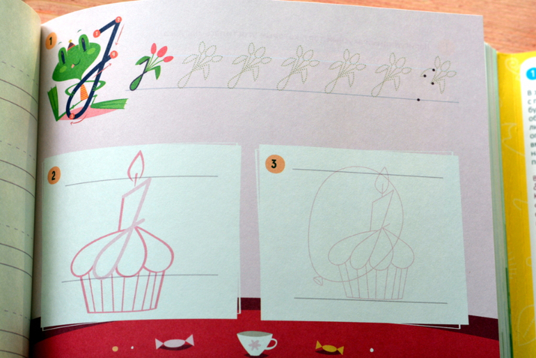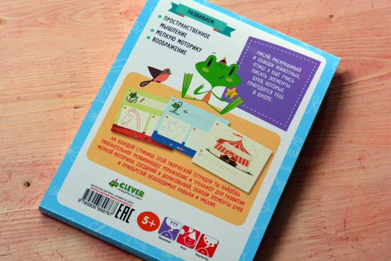Этот блокнотик хранится у меня в машине, чтобы всегда был под рукой. Сын занимается по этому пособию вне дома, оно помогает скоротать время до занятий в балетной школе, т.к. приезжаем всегда заранее из-за пресловутых московских пробок. Пьём с Илюшей чай в кафе культурного центра, а Илья ещё и делом занимается)))