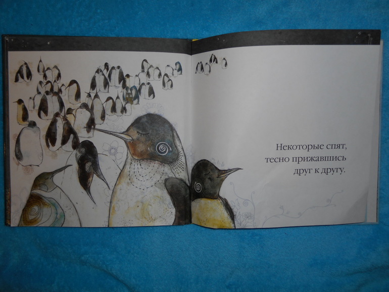 Можно изучить как кто спит, и поговорить, почему же пингвины «спят тесно прижавшись друг к другу». Можно поискать сову, она присутствует на каждом развороте.