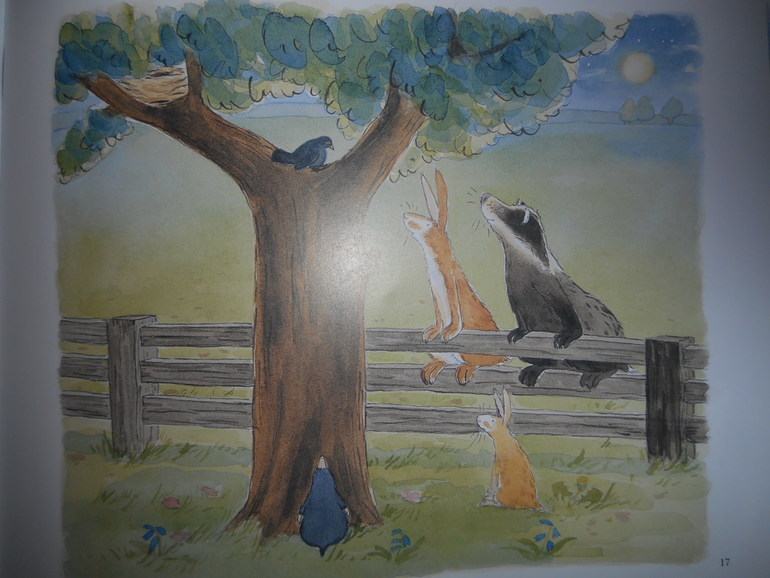 Честно сказать, книгу взяла из за иллюстраций, уж очень они мне понравились. Качество отличное, за месяцы эксплуатации ничего даже не помялось. На каждом развороте здесь свои краски уходящего дня и ночи. Здесь смеркается, а тут закат, густые сумерки начала ночи и ночь во всей красе. Все зыбкое, приглушенное. Таинственные тени, предрассветный туман и, кажется, даже шорохи. Зайцы, правда, какие-то не симпатичные, но не всем же быть милягами.