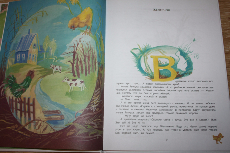 Первый рассказ всего на полстранички - про вылупившегося цыплёнка, который всё в своей жизни видит впервые. "Как хорошо, как чудесно увидеть мир рано утром! Как хорошо жить на земле!"