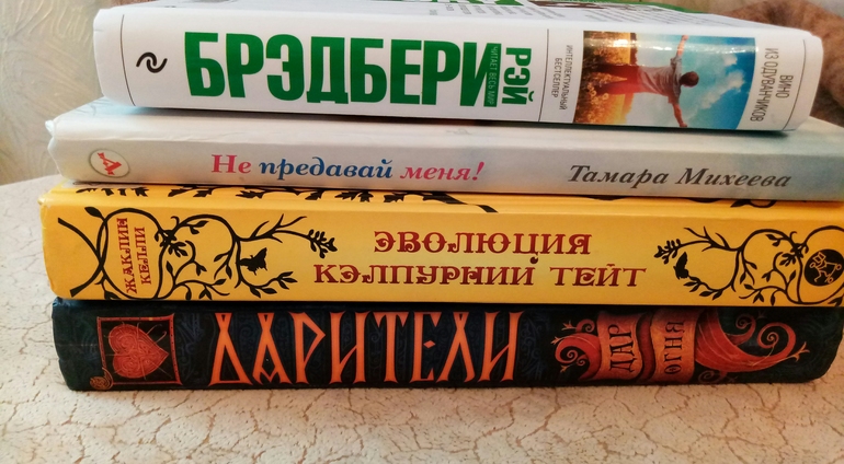 Начну с Брэдбери, чтоб уж отмучиться и все) окончательно убедилась, что не мое. Читали Вино из одуванчиков, книжка такая ладненькая, удобненькая,с твердой обложкой, небольшого формата, прям бери и читай) Читала) но сначала слово дочке