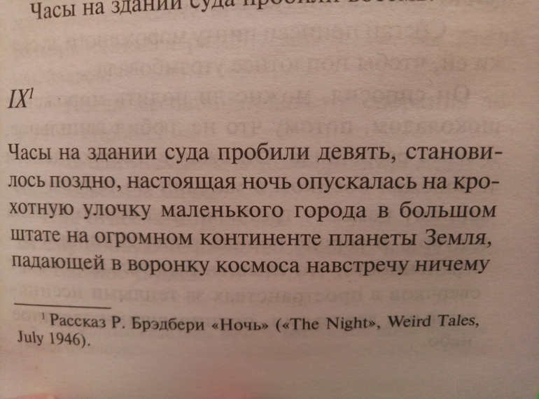 Я никогда не думала, что благодаря обычным словам так просто абстрагироваться от общества. Но Брэдбери смог: когда читаешь его произведение, невольно перестаешь обращать внимание на мир, суету вокруг тебя. Тебя окутывает ностальгия, события тех лет... Книга очень эмоционально насыщенная, только это видно не сразу.