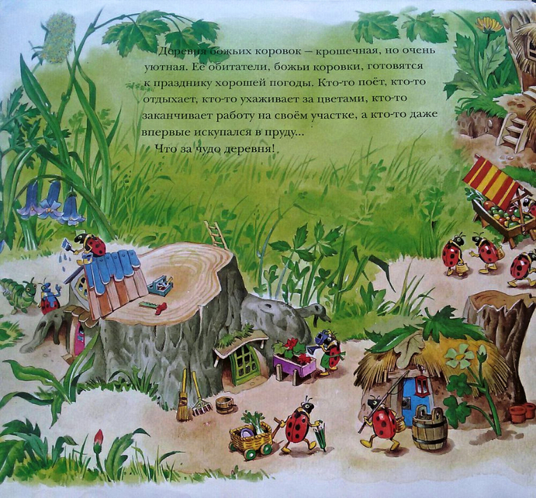 оо, "Деревня божьих коровок" у нас зачитана, клеена-переклеена, я ее наизусть знаю вот уже 10 лет )) очень нравится и простой текст, и иллюстрации