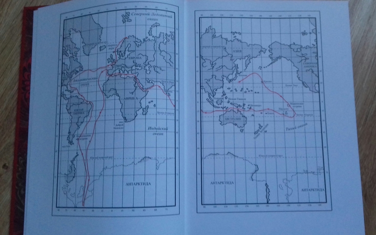 В начале книги есть карта, где красной стрелкой отмечен путь "Наутилуса":