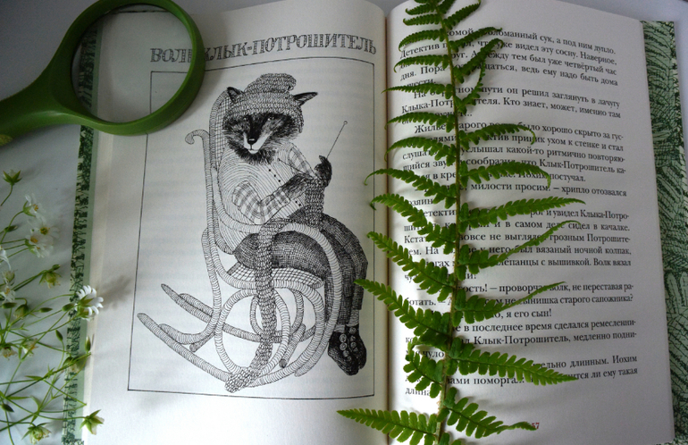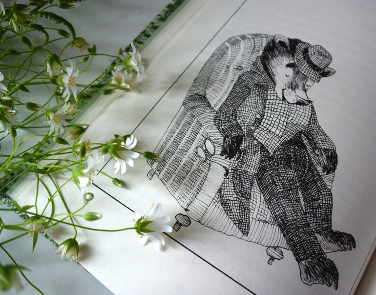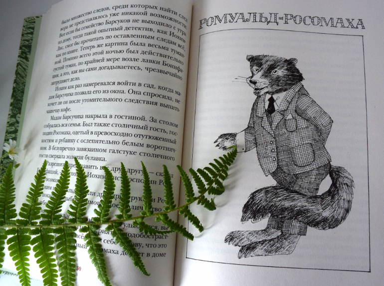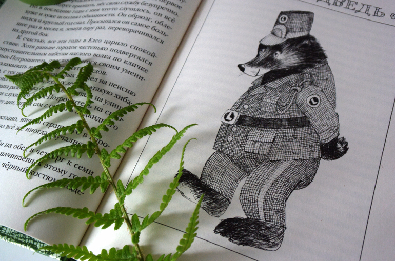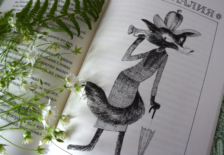 Т.к. у меня нет ностальгических воспоминаний из детства о других иллюстраций, то в данной книге рисунки показались подарком! Еще недавно плакала из-за отсутствия Иохима-Лиса в печатных изданиях и с тоской смотрела на читалку без рисунков. Сейчас же приятно рассматривать портреты героев книги. Цветные только обложка и форзац. Но как нежно люблю Диодорова в "Тутте Карлссон", так и здесь любовь с первого взгляда возникла. Нравится строгая выдержанность, костюмы с иголочки. Нравится такой же строгий (английский) стиль повествования. Ощущение, что читаешь Дойла, только этот Дойл пишет для детей, а преступника ищут среди зверей.