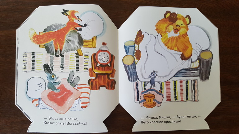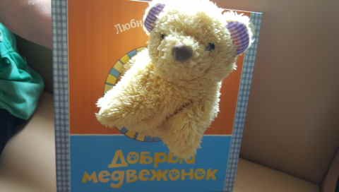 Текс книжки не очень нам нравится, а от мишки, который надевается на руку, мы в восторге.