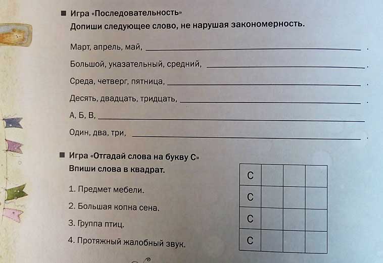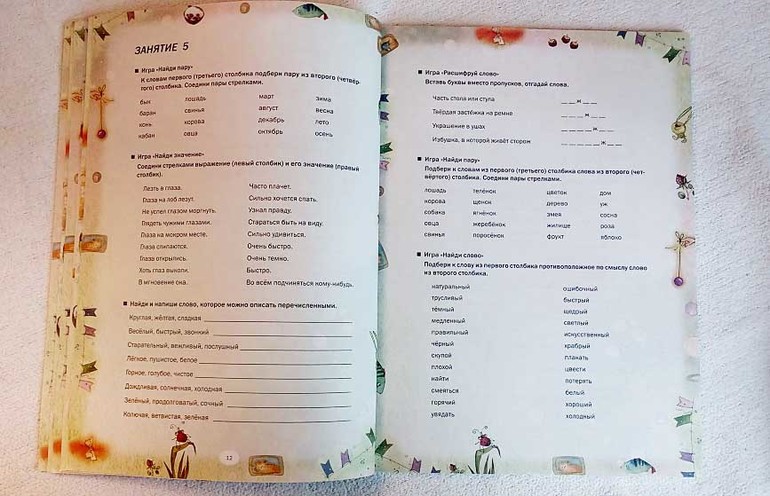 Покажу задания ближе. Они, действительно, очень разнообразные. В сборнике 30 занятий, в каждом занятии в среднем 6-8 игр.