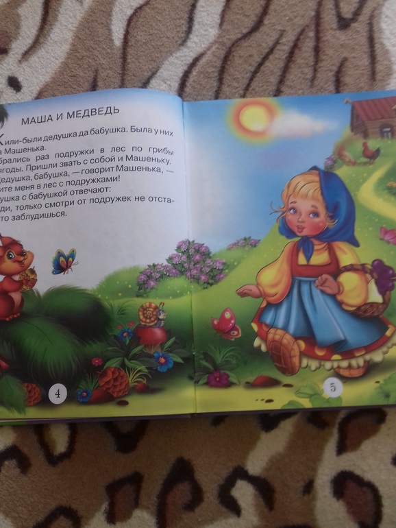 Наши первые сказки. Колобки-репки и т.д.) Местами забанный перевод( жабка-моргуха), но очень органично. Читали с удовольствтем, даже на зуб попробовали)