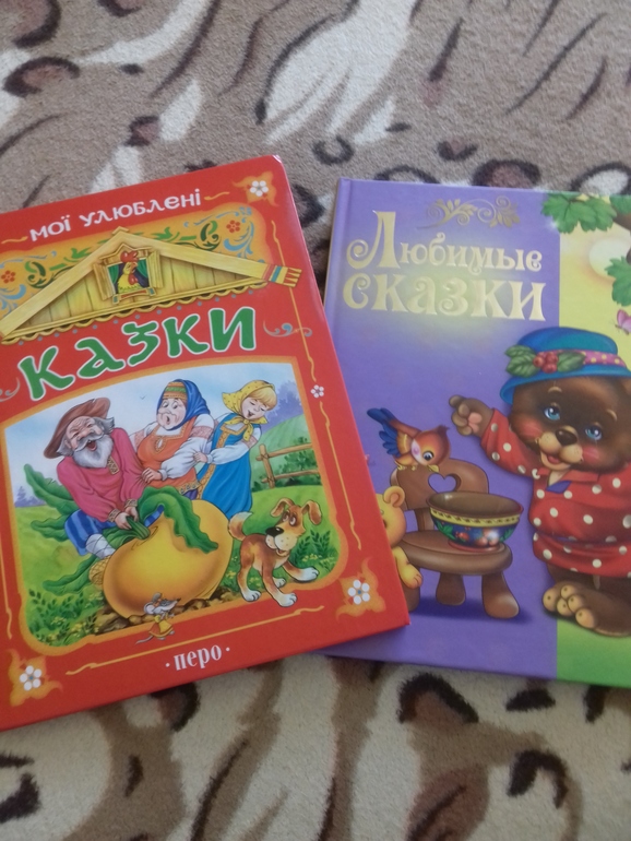 "Мої улюблені казки" - та, что первая у Вас, у нас тоже есть, первая, наверное, из некартонных. Клеенная-переклеенная, кусанная-перекусанная, думала как-то даже заменить, а потом оставила как есть для истории. Очень ее любили, и иллюстрации там милые (или я привыкла к ним).