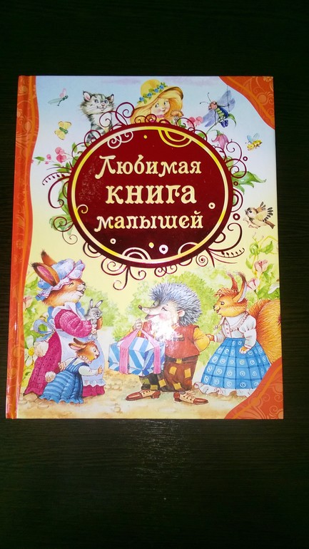 Наша первая толстая книга была "Любимая книга малышей" от издательства "Росмэн".