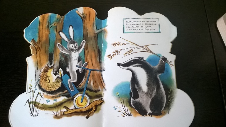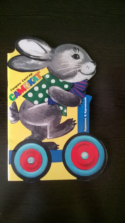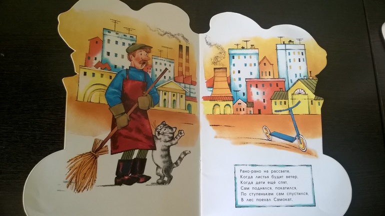 Генрих Сапгир "Самокат" издательства "Лабиринт Пресс", в книге описывается в стихотворной форме принцип катания на самокате и книга учит спросить разрешения, если хочешь что-то взять.