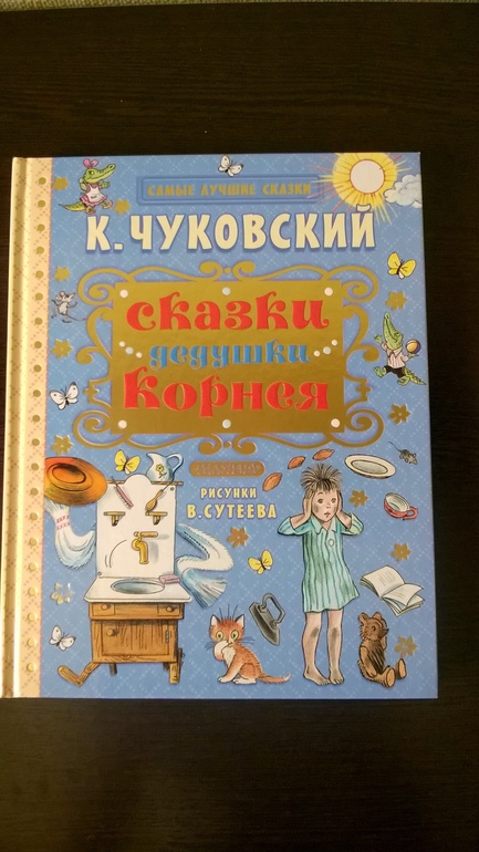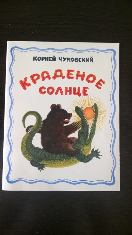 Я думаю, не одна детская библиотека не обходится без сказок Корнея Чуковского. У нас две книги: толстая книга от издательства "Малыш" "Сказки дедушки Корнея" с иллюстрациями В. Сутеева и тонкая книга "Краденое солнце" от издательства "Мелик-Пашаев" с иллюстрациями Ю. Васнецова.
