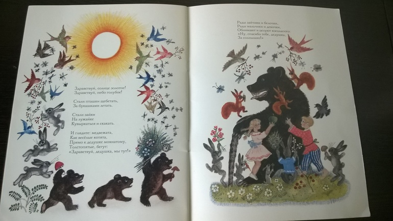 Еще более любимая книга и прочитанная миллион раз это книга С. Маршака "Все сказки для малышей" издательства "Малыш". В книге изумительные иллюстрации и хорошая подборка сказок для малышей. Развороты страниц: