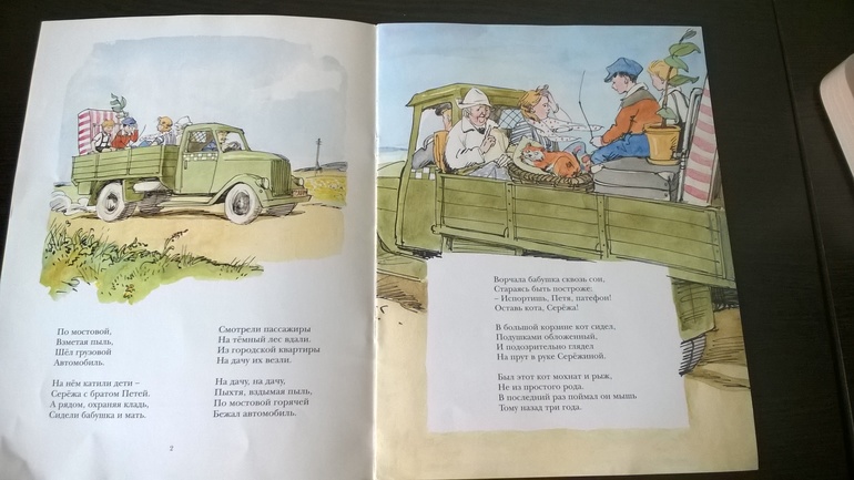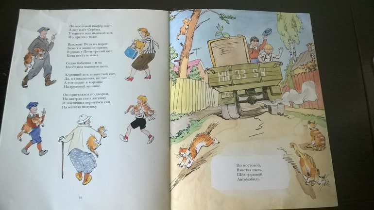 Моему сыну нравится рассматривать грузовую машину и показывать на каждой странице кота и других животных.