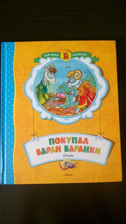 Мой сын любит, чтобы ему читали только стихи или сказки в стихотворной форме и я искала книгу со сборником стихов разных авторов для малышей. И нашла я замечательную, веселую книгу "Покупал баран баранки" издательства "Махаон". В книге собраны по несколько стихов таких авторов, как А. Барто, Э. Мошковская, Я. Аким, В. Лунин, В. Берестов, И. Токмакова, Г. Сапгир, З. Александрова и другие.