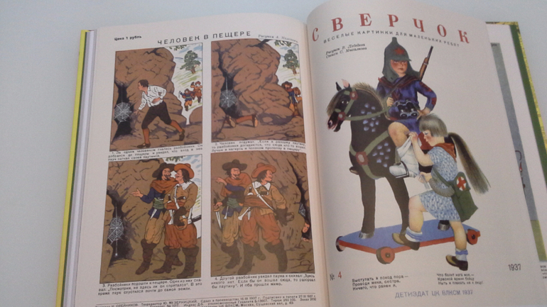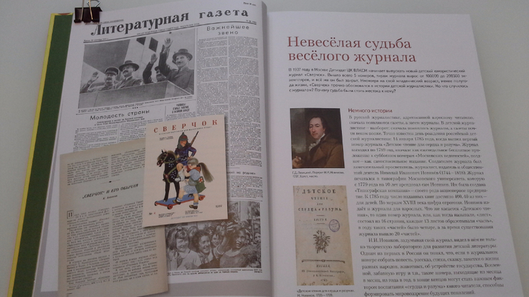 Номера журнала и газеты напечатаны в реальном масштабе, т.е. и картинки и шрифты точно такие, как были в настоящих изданиях.